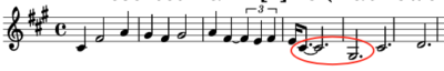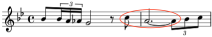 How Formed: 33/2 ratio, such as two whole notes and a quarter note, all tied, followed by an eighth note.